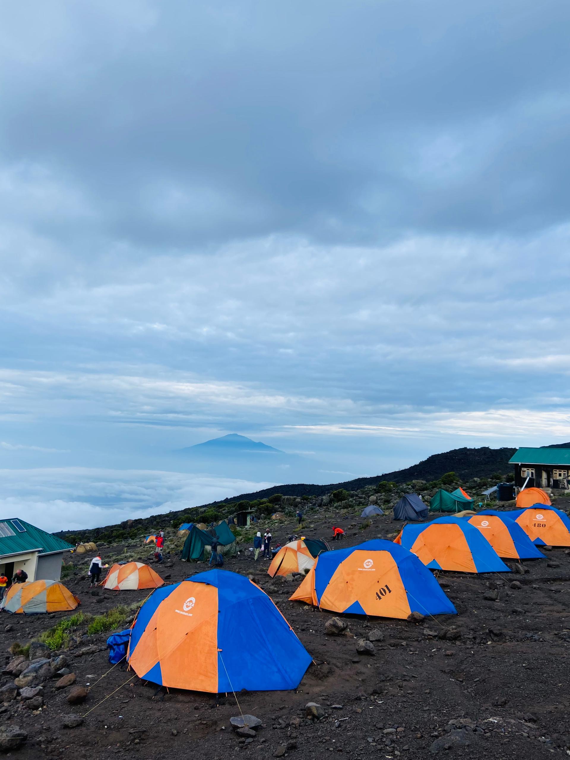 The base camp on Mount Kilimanjaro is often the final camp before the summit (like Barafu Camp or Kibo Hut). It’s where climbers sleep before embarking on the final ascent, and it serves as the rest stop for the chosen route. There are also camps located below, where climbers can rest and prepare for the next stage of their ascent, depending on the route. Each climbing path has its base camp: