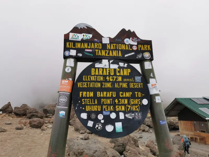 - Barafu Base Camp: This base camp is usually crowded. This is because it is frequented by many hikers taking the Lemosho, Umbwe, Machame, Shira, and Northern Circuit routes. There are no signs of plants and animals because of the high altitude. It is known to be cold, with temperatures below the freezing point, and very low humidity. When there are a lot of people on the campsite, it becomes difficult to find a suitable place to pitch your tent. Hikers should take a sleeping bag, food, and water with them.